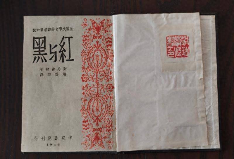 1944年,赵瑞蕻译《红与黑》上部首印,由作家书屋刊行,被列为法国文学名著译丛第六种,黑色布质封面,扉页题“献给幸福的少数人”,署名“斯丹达尔著,赵瑞蕻译”,成为中国《红与黑》的传播起点。老师吴达元称赞其在炮火中译出了“清醒、振作的力量”,这也奠定了赵译本的经典地位。